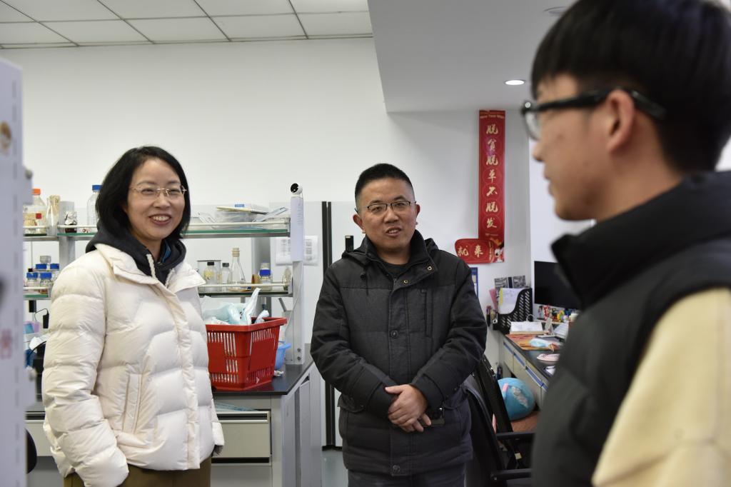 动态更新留校学生信息台账,关注留校学子的身心健康和科研进展,确保留校学子平安过节、离校学子安全返乡。2月5日上午,学院党委书记傅莉莉、副书记兼副院长李雷、研究生辅导员胡卉君走访实验室慰问留校学子,询问他们的学习生活、假期安排等,叮嘱大家注意实验室安全,合理规划假期。