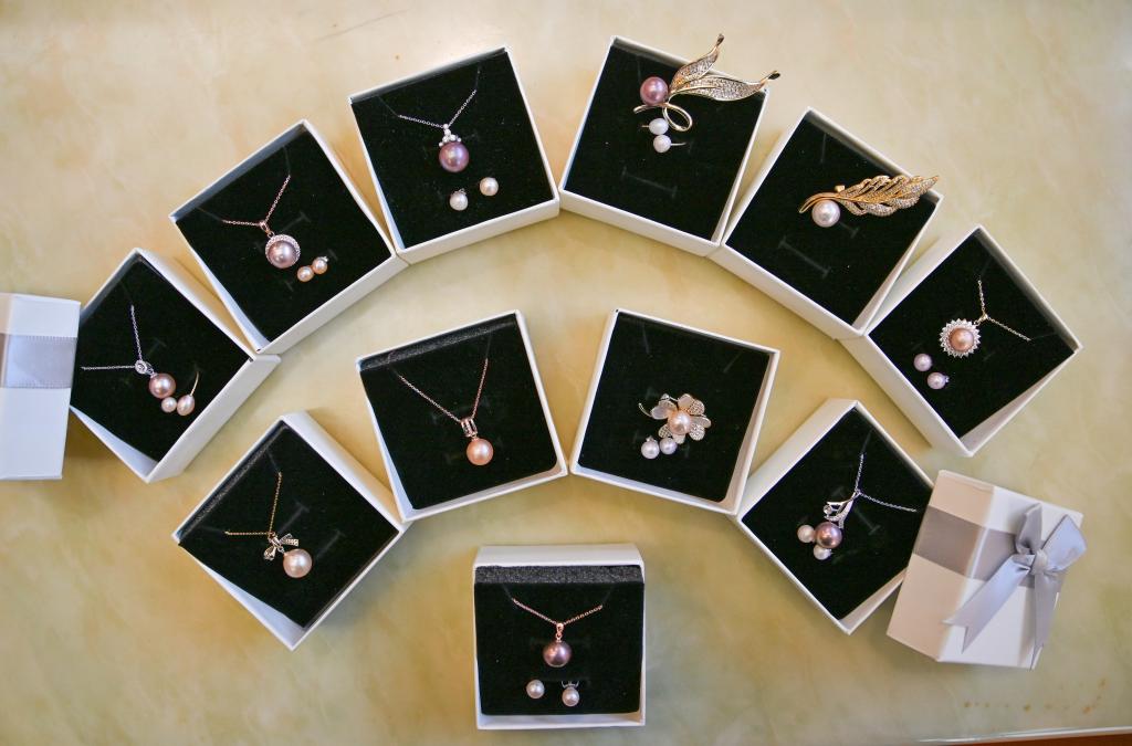 活动伊始,工艺师为大家分发了珍珠蚌和制作工具,详细讲述了珍珠的基本知识以及珍珠饰品的制作步骤。在工艺师的指导和帮助下,大家使用专业工具进行开蚌。当珍珠蚌打开的瞬间,一颗颗珍珠让人眼前一亮,引来了大家的阵阵欢呼声,现场气氛热烈欢快。通过洗珠、浸泡、抛光、打孔、粘合等过程,再根据珍珠的样式、色彩选择配饰,一件件精美的珍珠饰品在老师们手中诞生。