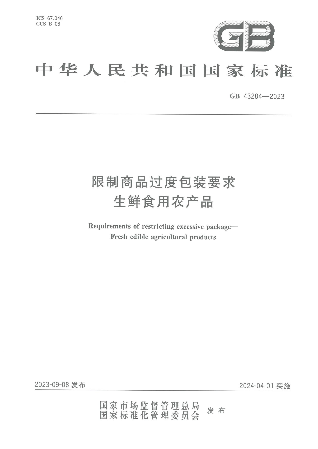 4月1日,《限制商品过度包装要求 生鲜食用农产品》国家标准开始实施,将为强化商品过度包装全链条治理、引导生鲜食用农产品生产经营企业适度合理包装提供执法依据和基础支撑。