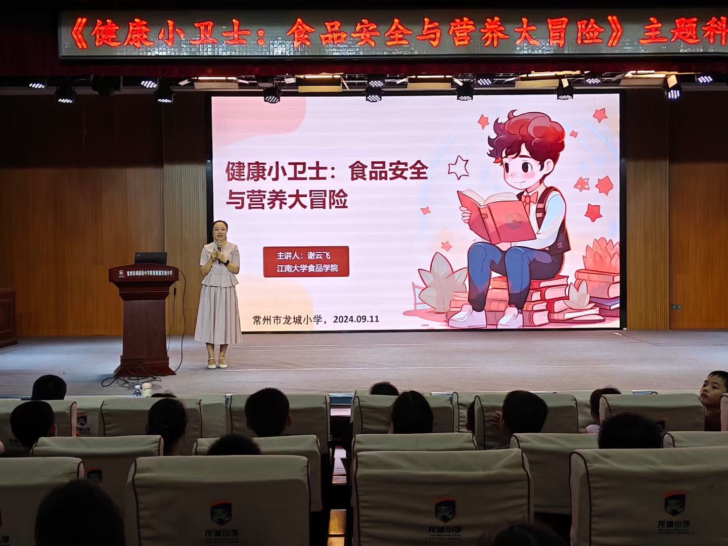 教授谢云飞走进常州市龙城小学,以《健康小卫士:食品安全与营养大冒险》为主题,为小学生们带来一场生动的科普讲座。谢云飞以贴近生活的食品安全事件为切入点,生动有趣地强化学生们对食品安全的认识,为他们树立正确、健康的饮食观念。