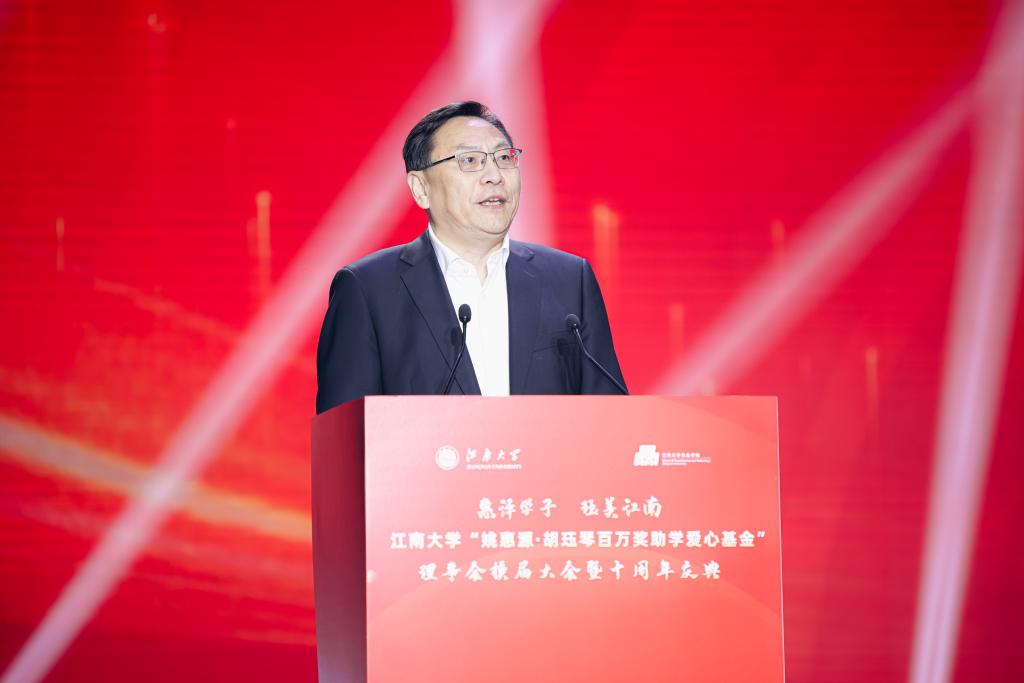 吴正国首先致辞。他代表学校党政向出席活动的领导嘉宾表示热烈欢迎,向姚惠源老师表达最诚挚的敬意。他指出,爱心基金将几代江南食品人汇聚在“培养一流食品人、追逐食品强国梦”的同心圆中,这是一种师风引领、行业协同、社会联动的育人新模式,是立德树人的良好实践。他希望学子们接续传承,常怀感恩之心,常思来之不易,担当青春使命,用所思所学增进民生福祉、推动社会进步,为强国建设和民族复兴贡献江南青春力量;希望青年教师以姚惠源等前辈为榜样,将教育家精神深植于心、付诸于行,做到立德立言立功,躬耕教坛,桃李天下。吴正国希望耽美漫画