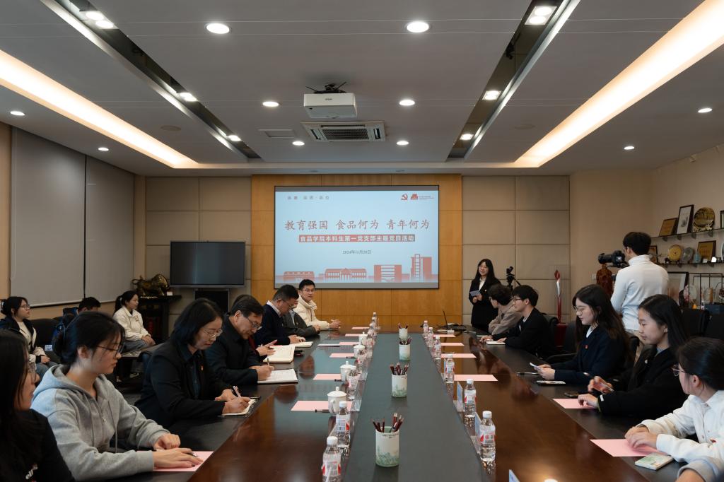 党支部组织委员、食科2101班本科生顾洺菲领学党课《学习全国教育大会精神做挺膺担当奋斗者》。她从深刻认识全国教育大会的时代背景展开,带领大家重点学习习近平总书记在全国教育大会上的重要讲话精神,探讨教育强国建设进程中食品何为之问,并结合学科的时代使命,明确食品青年的责任担当。在场师生围绕党课主题,结合自身学习、工作、生活经历展开交流研讨。