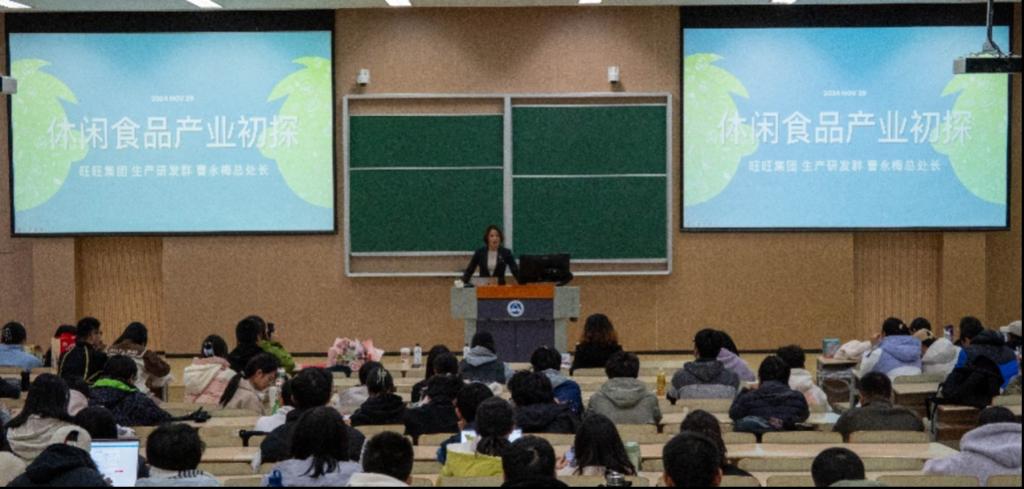 “旺旺”诞生于1962年,历经多年发展,现已成为享誉国内外的食品企业,足迹遍布五大洲,熟悉的产品一下子拉进了师生之间的距离,将食品专业具象化地展现在听众面前。