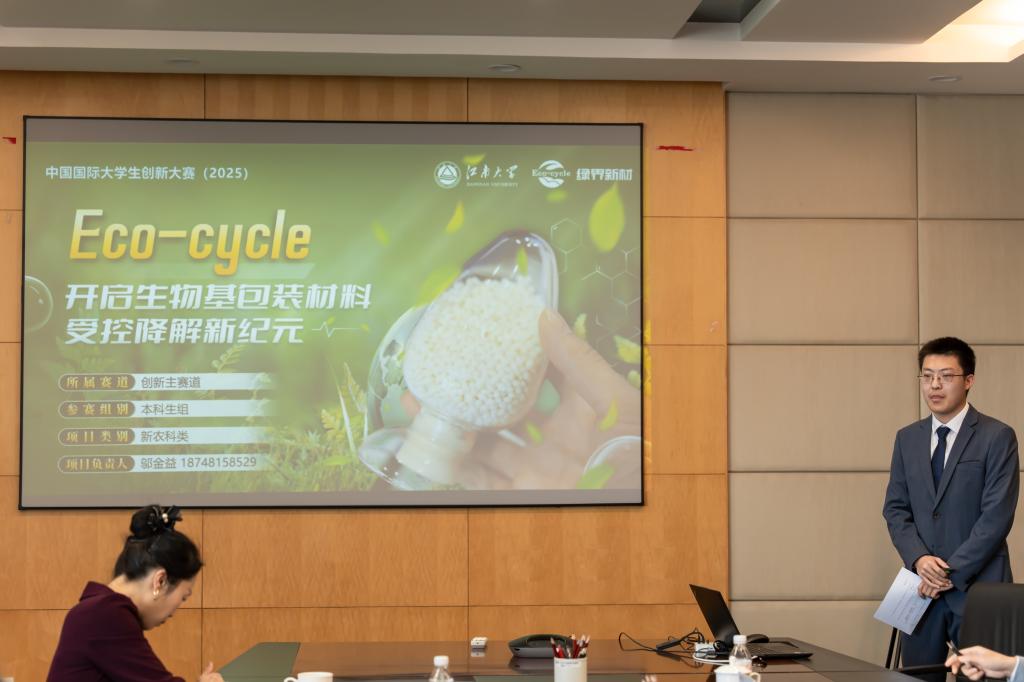 经过前期筹备和遴选,本次共有11支团队入围院赛。参赛项目均聚焦食品行业前沿,涵盖儿童精准营养、淀粉基受控降解新材料、精准微碾全谷物、超灵敏食品安全可视化快检等领域。参赛选手以“展示+问辩”的形式,从项目背景、产品内涵、核心技术、商业模式等多个方面阐释项目,并对评委老师的提问逐一回应,收效良好。