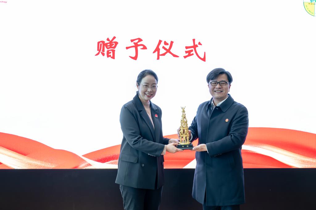 赠送“向往”雕塑。李雷向金桥教育集团健康管理中心颁授“食育中国行·科普小站”铭牌。