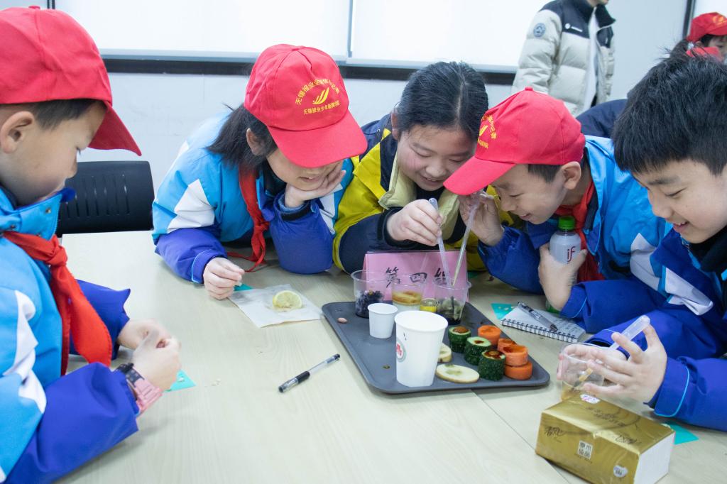 在读硕士、全国优秀共青团员余柳锋通过理论知识与科学实验相结合的方式,引导小学生们认识和学习蛋白质、碳水化合物等七大营养素,在趣味互动中探寻食品科学的奥秘。