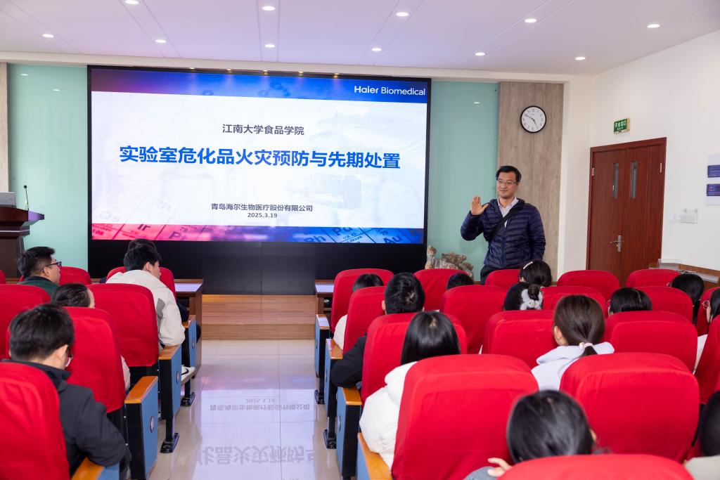 随后,在室内的《实验室危化品火灾预防与先期处置》专题培训中,李公海结合实际案例讲解化学品消防常识与初期火灾扑救技巧。师生围绕“实验室初期火灾安全逃生操作”“实验室安全出口标准”“安全管理意识培养”等话题深入讨论,切实强化安全认知纵深。