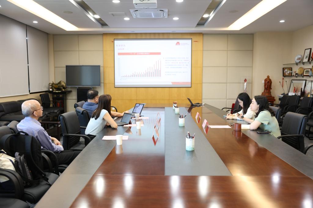 廖廖景伦介绍南洋理工学院情况,分享其发展成果和教学模式,并表示双方长期保持友好关系,在学术交流、学生互动等领域开展了广泛的合作,未来前景可期。