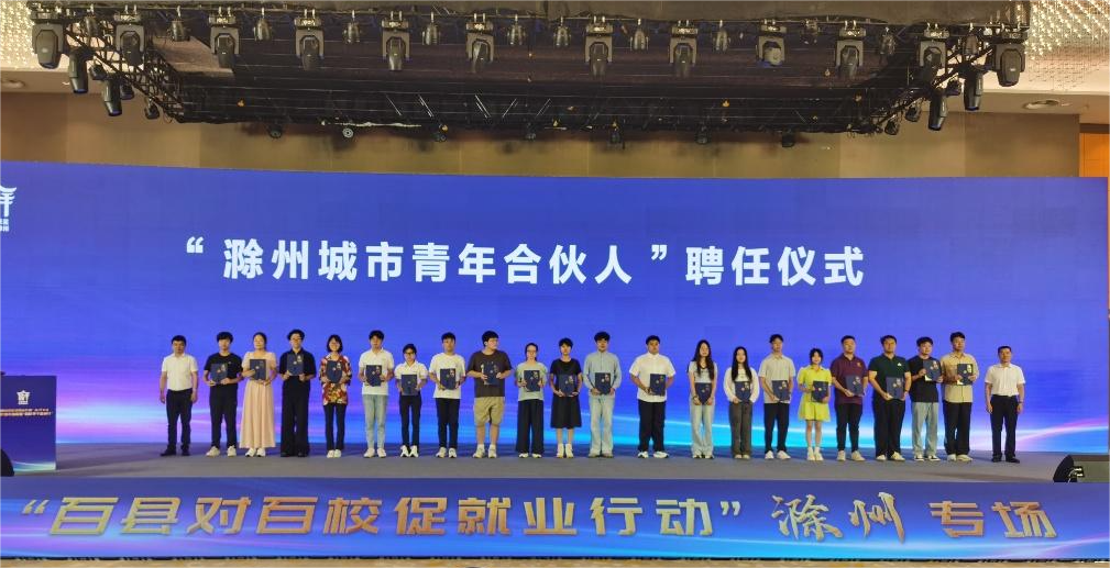 教师刘要卫和在读学生董欣然应邀参加此次“百县对百校促就业行动”滁州专场校企供需对接会暨“百校学子滁州行”活动。董欣然作为青年学生代表受聘滁州城市青年合伙人。此次活动的成功举办,为高校毕业生与企业之间搭建了高效对接平台,有力推动了高校人才与地方产业的深度融合,对地方人才汇聚和经济社会发展有着重要意义。