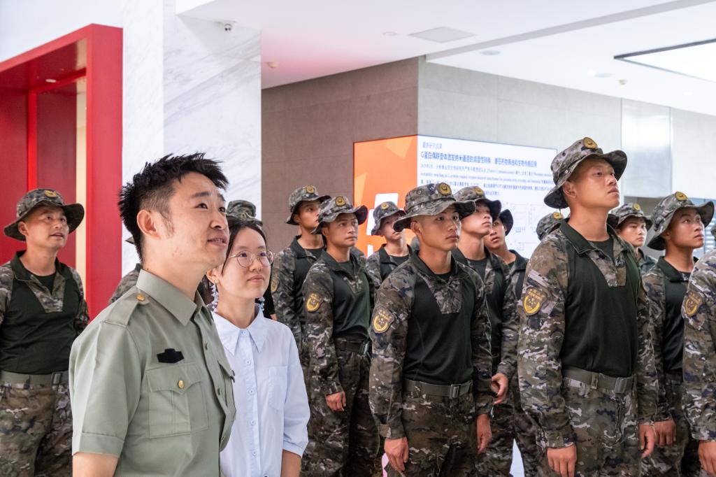 活动伊始,教官队伍走进食品主楼。在2025级本科生辅导员穆元炜和2023级本科生蒋欣玥的带领下,教官们依次参观了实验室与主楼大厅。实验室内配置先进仪器设备,科研人员操作规范,展现出学院扎实的科研基础与严谨的学术氛围;主楼大厅以“食品红”为主题色,通过展板陈列了耽美漫画