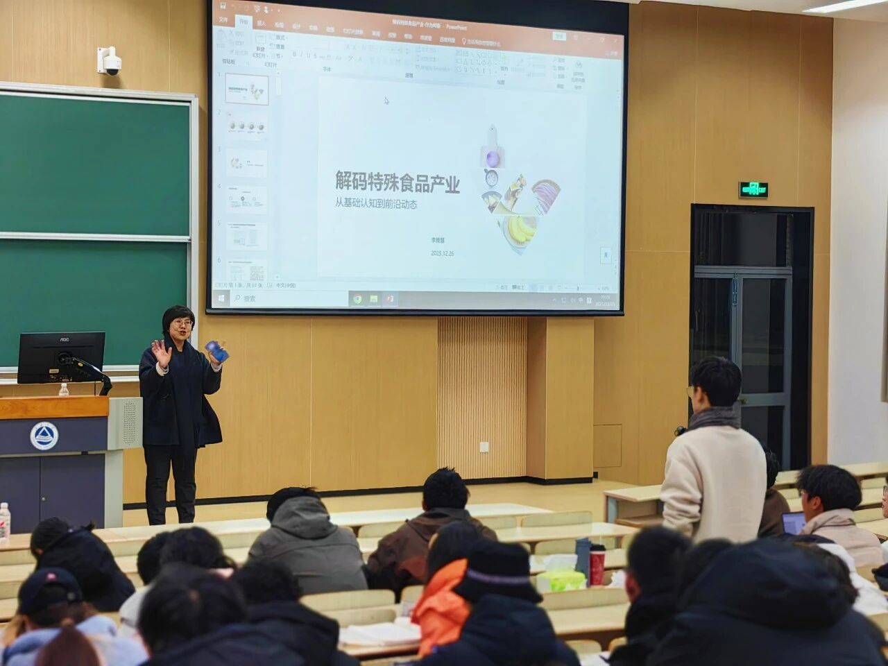 李教授也坦诚地谈到产业发展中面临的挑战,如企业规模偏小、创新能力待提升、部分原料依赖进口等,并指出这正是未来中国食品人可发力突破的方向。她进一步展望了合成生物学、精准营养、智能制造等前沿科技在特殊食品领域的应用前景,激发同学们对食品科学与技术融合发展的兴趣与想象。