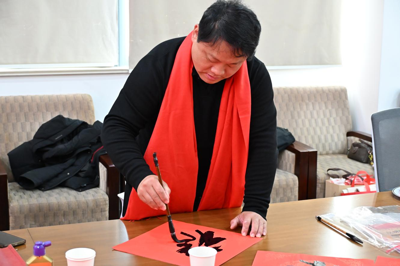 活动在温馨喜庆的氛围中拉开帷幕。现场设置对联撰写、新春拍摄、手工摆件制作等多个传统民俗体验区。对联体验区,老师们挥毫泼墨,一笔一画书写新春祝福,红纸黑字间洋溢着浓浓年味与文化韵味。摄影区欢声笑语不断,大家手持趣味道具,拍摄集体照与个人留念,定格美好瞬间。手工摆件制作区则展现了老师们的匠心巧思,一件件象征辞旧迎新的新春装饰在手中诞生,为即将到来的春节增添了些许鲜活色彩。