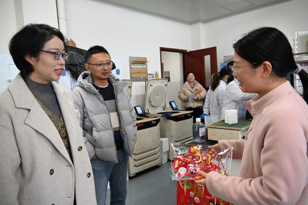 党委书记傅莉莉与党委副书记、副院长陈勇,副院长程力一同前往实验室,走访慰问仍在坚守科研岗位的学子。傅书记仔细询问同学们的实验进展与假期安排,叮嘱大家务必注意实验室安全,合理安排作息,并祝愿同学们在新的一年里“马”到成功、实验顺利、学业进步。
