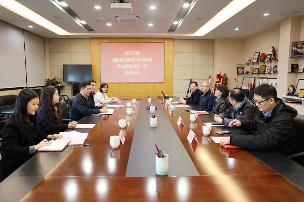 在粮食科技领域取得的成就表示赞赏。他指出,湖南作为粮食主产省,在粮食储备、质量监管、绿色仓储等方面存在新的发展机遇与挑战,亟需借助高校科研与人才优势,提升粮食全链条安全保障能力。