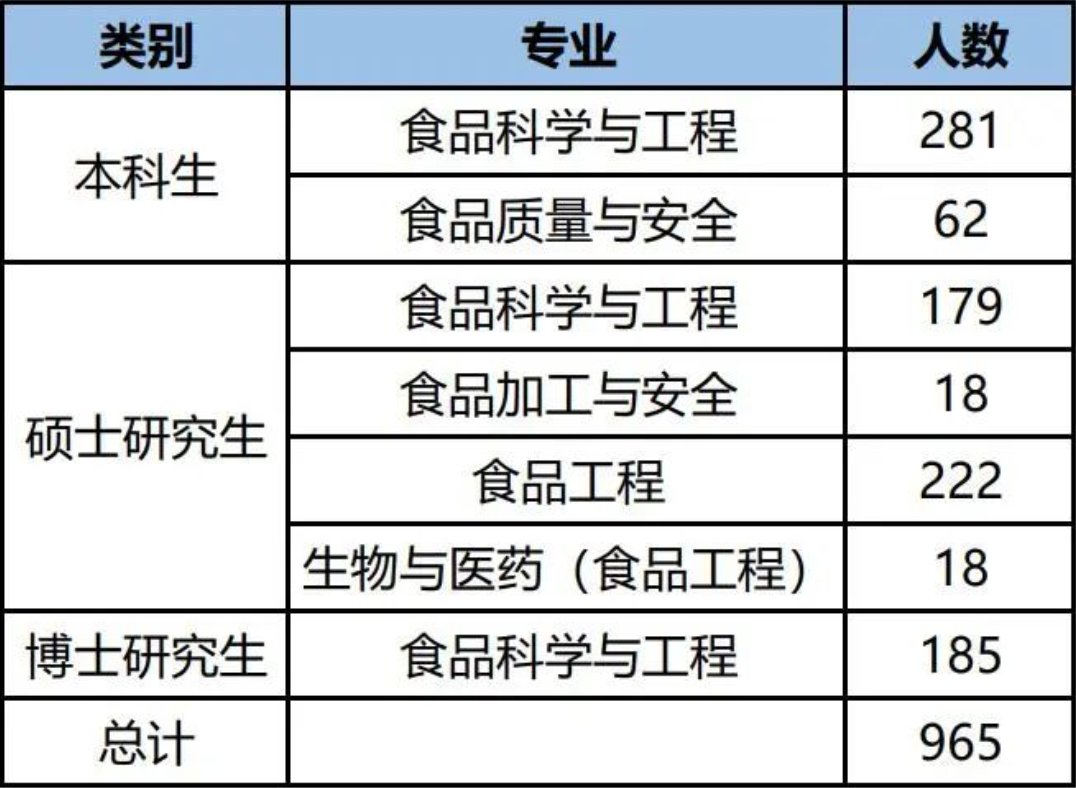 食品学科在我国同类学科中创建最早、基础最好、覆盖面最广,2007年被遴选为食品领域唯一的国家一级重点学科,2017年入选国家“双一流”建设学科,2009年以来蝉联全国学科评估第一(A+),2019年以来连续四次位居“软科”世界一流学科排名全球第一。