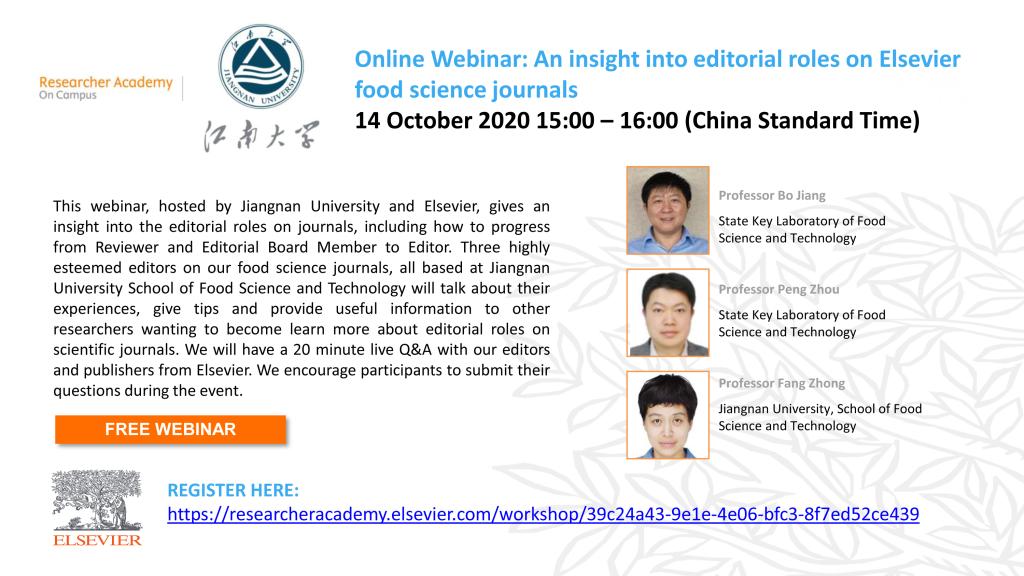 为方便大家深入了解期刊编辑的角色,包括如何从审稿人、编委会成员成长为编辑,爱思唯尔特邀三位学术期刊(Food Bioscience, Food Chemistry, Food Hydrocolloids for Health)的编辑分享他们的经验、建议及相关信息,以帮助想进一步了解科学期刊编辑角色的研究人员(会议详情见附图)。本次网络研讨会由耽美漫画