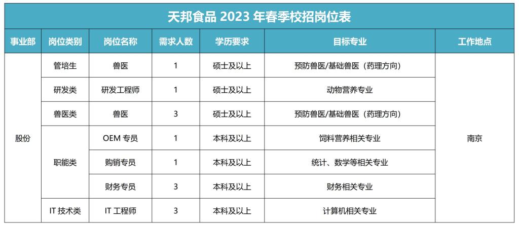 线上招聘:扫描文末二维码——关注【天邦招聘】公众号——点击“简历投递”——选择“校园招聘”。