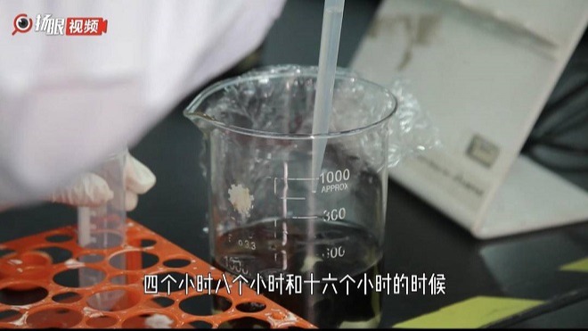 “青芽食育”团队的实验人员,在超市购买了黑木耳,将干木耳分等量的四份,室温下分别在实验器皿中浸泡2小时、4小时、8小时、16小时。实验人员取适量泡发液,用专门检测米酵菌酸的试剂盒进行测定,在2小时、4小时、8小时的泡发液中并未检出米酵菌酸。