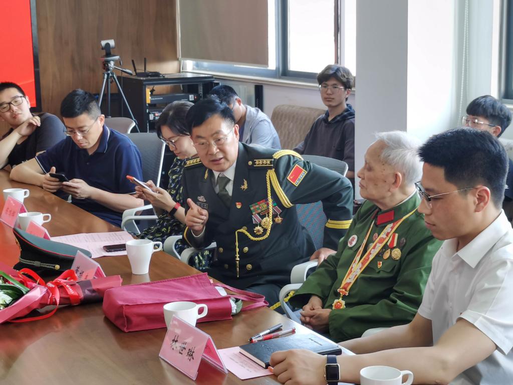 两位老兵的发言引起现场师生深深的共鸣。互动环节,有同学表示,身为新时代青年有幸与中国的新时代相认相知、相进退,应当心怀祖国、肩负使命,大步前行、不辱使命。两位老先生勉励大家,一代人有一代人的历史使命,中国青年的使命与国家前途、祖国发展息息相关。当代青年人应该心怀梦想、勇担责任,通过自我完善与自我提高为祖国的繁荣发展贡献青春力量。