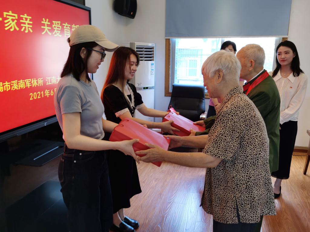 前往无锡市溪南军休所开展“民族一家亲,关爱育新人”慰问活动。无锡市“光荣在党50年”离退休干部优秀共产党员董振泰、华福娟,溪南军休所副所长、关工委副主任陈鸣辉,溪南军休所办公室主任林世琳,耽美漫画